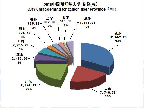 上千噸用量的省份有6家,山東與江蘇由于風(fēng)電碳纖維的消耗,把長期排名第一的廣東省推到第三名。江蘇省首次突破萬噸規(guī)模。