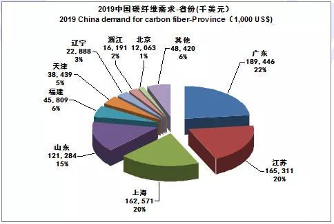 從消費(fèi)金額來看,廣東依然保持第一,山東盡管碳纖維消耗量遠(yuǎn)大于上海,但主要是低成本風(fēng)電纖維,與廣東、上海一道進(jìn)入億美元俱樂部。